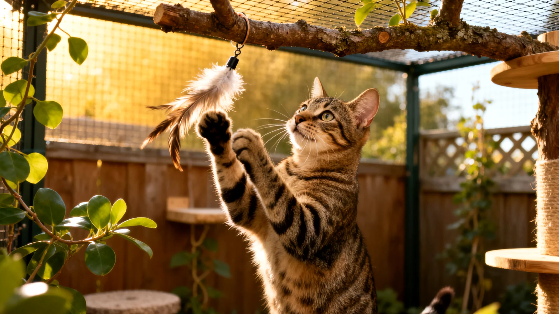 Im Sommer sind schattige Rückzugsorte und kühles Wasser essentiell. Vermeide Aktivitäten in der Mittagshitze, die für Katzen gefährlich werden kann. Im Herbst bieten Laubhaufen und fallende Blätter endlose Unterhaltung. Im Winter braucht es beheizte Rückzugshütten und verkürzte Aufenthaltszeiten bei Frost.