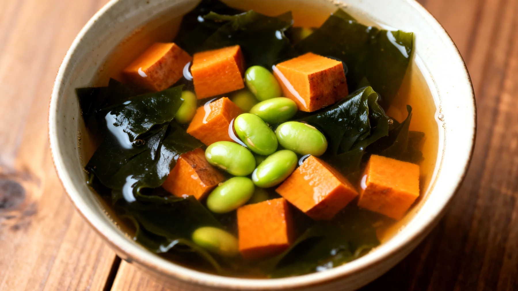 Nach einem langen, fordernden Tag sehnt sich der Körper nach Nährstoffen, die ihn sanft regenerieren lassen, ohne dass man sich dabei überladen oder träge fühlt. Eine dampfende Schale Miso-Suppe mit Wakame-Algen, Edamame und Süßkartoffelwürfeln vereint genau das: eine durchdachte Mischung aus Proteinen, komplexen Kohlenhydraten und wertvollen Mineralstoffen, die besonders am Abend überzeugt.