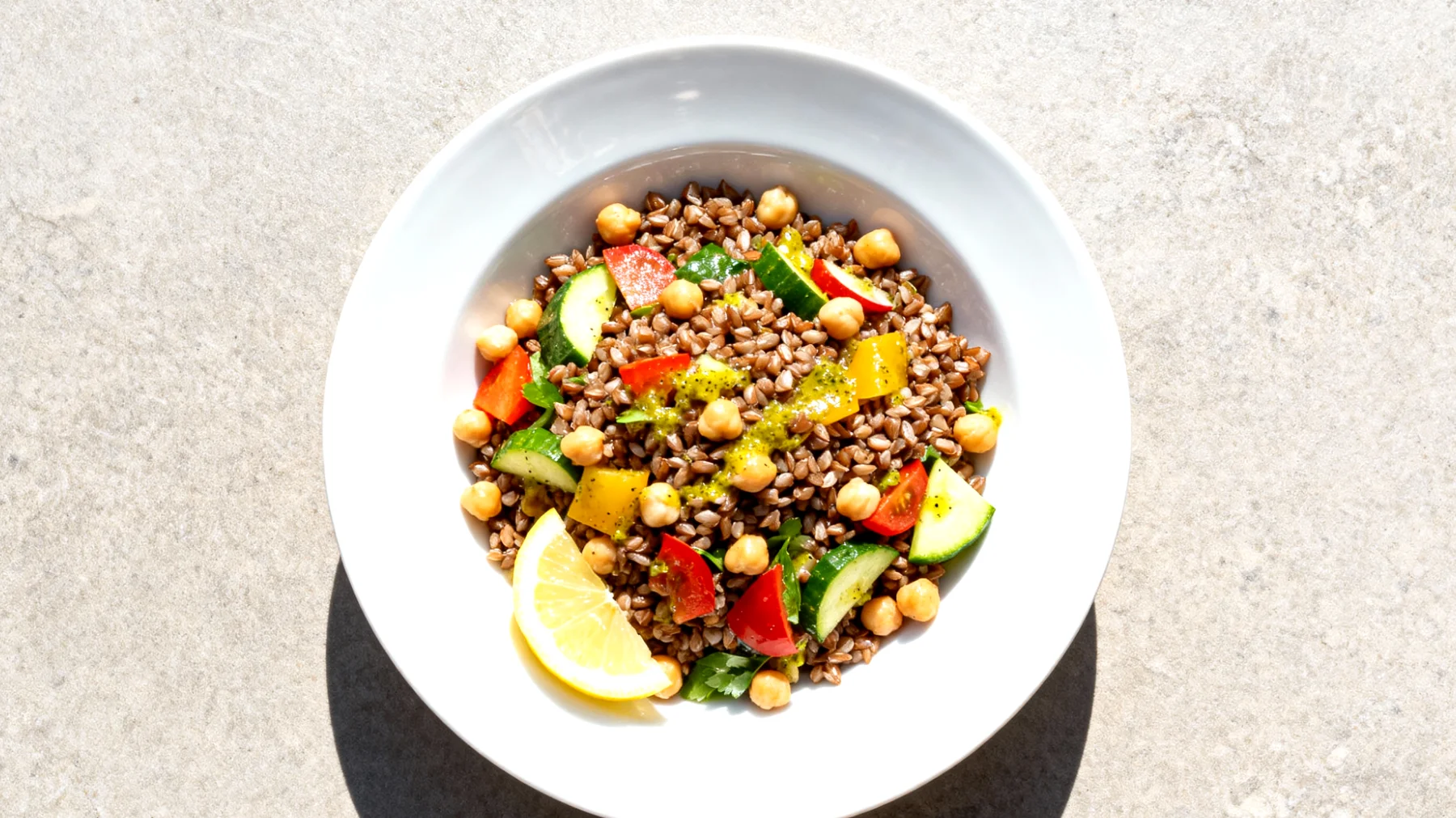 Der Berufsalltag hinterlässt Spuren – nicht nur mental, sondern auch körperlich. Zwischen Meetings und Deadlines wird das Mittagessen am Schreibtisch hinuntergeschlungen, und abends macht sich ein unangenehmes Völlegefühl breit. Genau hier setzt der Buchweizen-Gemüse-Salat mit Kichererbsen und Zitronendressing an: Eine Mahlzeit, die trotz Zeitdruck gut tut und den Körper mit allem versorgt, was er für einen langen Arbeitstag braucht.