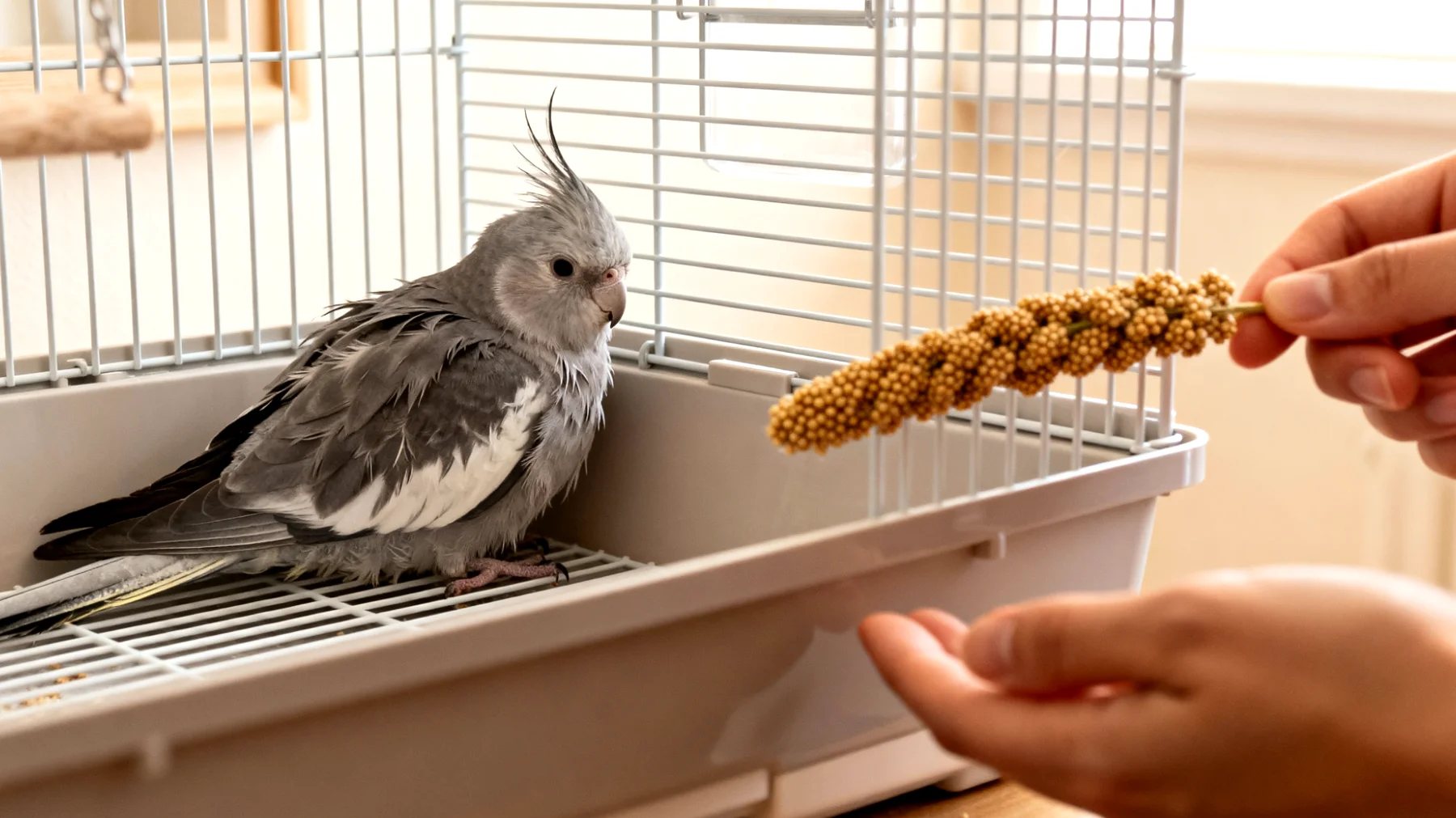 Fütterung ist weit mehr als bloße Nahrungsaufnahme. Sie ist Kommunikation, Bindung und Vertrauensaufbau. Ein älterer Nymphensittich, der sein bisheriges Leben in einer anderen Umgebung verbracht hat, muss erst lernen, dass seine neuen Bezugspersonen verlässlich und wohlwollend sind. Bieten Sie besondere Leckerbissen wie Hirsekolben aus der Hand an, ohne den Vogel zu bedrängen. Hirse weckt bei vielen Nymphensittichen positive Assoziationen und eignet sich hervorragend als Friedensangebot.
