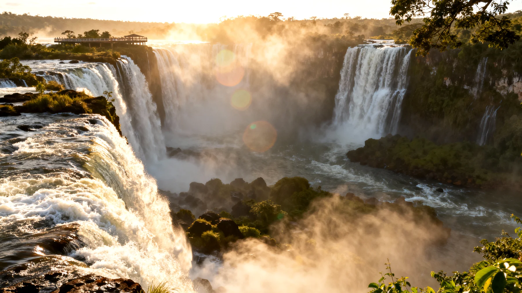 Über 270 einzelne Wasserfälle erstrecken sich auf einer Breite von fast drei Kilometern – dieses gewaltige Naturspektakel lässt selbst weltgewandte Reisende staunend innehalten. Der Teufelsschlund, der beeindruckendste Teil der Fälle, verschlingt mit ohrenbetäubendem Getöse bis zu 1.500 Kubikmeter Wasser pro Sekunde. Die aufsteigenden Wassernebel erzeugen unzählige Regenbogen, die im Dezemberlicht besonders intensiv leuchten.