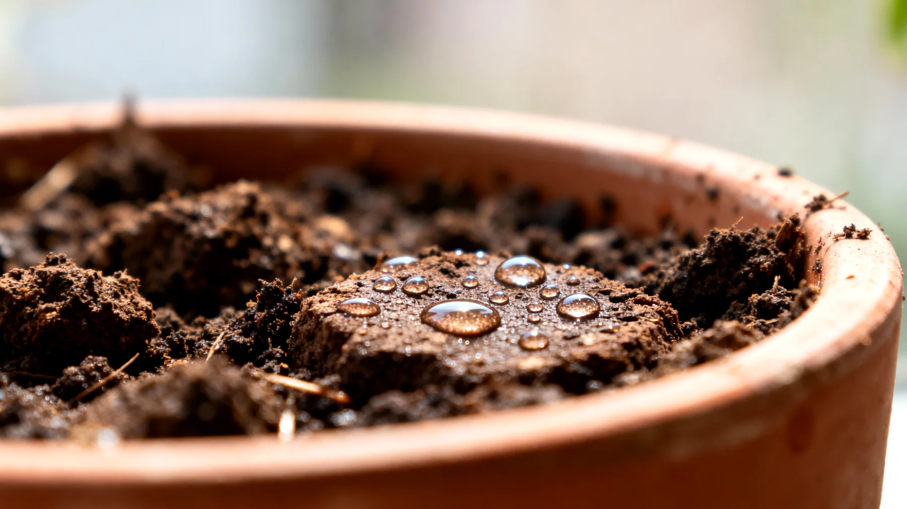 Nicht jedes Wasser ist gleich. Kalkreiches Leitungswasser kann die Wasseraufnahme langfristig beeinträchtigen, da Calcium- und Magnesiumionen sich im Substrat anreichern und die Struktur verändern können. Dadurch kann die Oberfläche schneller austrocknen, während tiefere Schichten noch feucht sind – ein Irrtum, der oft zu erneutem Gießen führt, obwohl die Pflanze noch ausreichend versorgt ist.