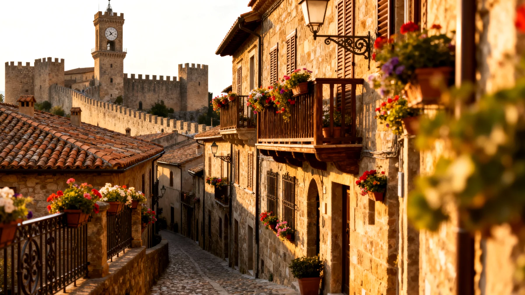 Oben angekommen, erwartet euch ein Labyrinth aus schmalen Kopfsteinpflastergassen, flankiert von Häusern in Gelb, Orange, Grün und Rosa. Der Uhrenturm ist das Wahrzeichen der Stadt und beherbergt ein Museum, das euch durch die Geschichte der Region führt. Der Eintritt kostet etwa 3 bis 4 Euro – ein absolutes Schnäppchen für das, was euch geboten wird. Von der Spitze des Turms habt ihr einen fantastischen Panoramablick über die Dächer der Stadt und die umliegenden Hügel.