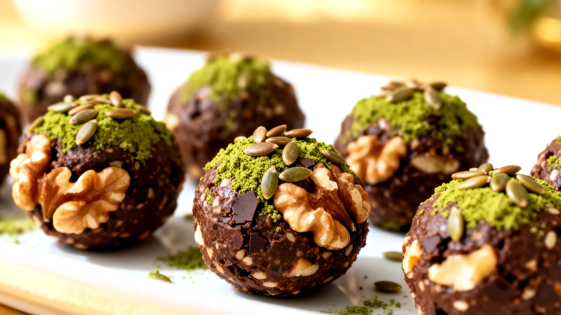 Ein Teelöffel Matcha-Pulver auf sechs bis acht Bällchen ist eine angemessene Dosierung, um die positiven Effekte zu nutzen, ohne die nächtliche Regeneration zu beeinträchtigen. Wer abends trainiert, sollte diese Menge gegebenenfalls halbieren oder auf matcha-freie Varianten ausweichen. Die Wirkung von Matcha-Koffein und den mehrfach ungesättigten Fettsäuren aus Walnüssen schafft eine interessante Balance: Das Gehirn erhält einerseits den nötigen Kick für mentale Klarheit, während andererseits die gesunden Fette eine gleichmäßige Energiefreisetzung gewährleisten und Blutzuckerschwankungen vermeiden.