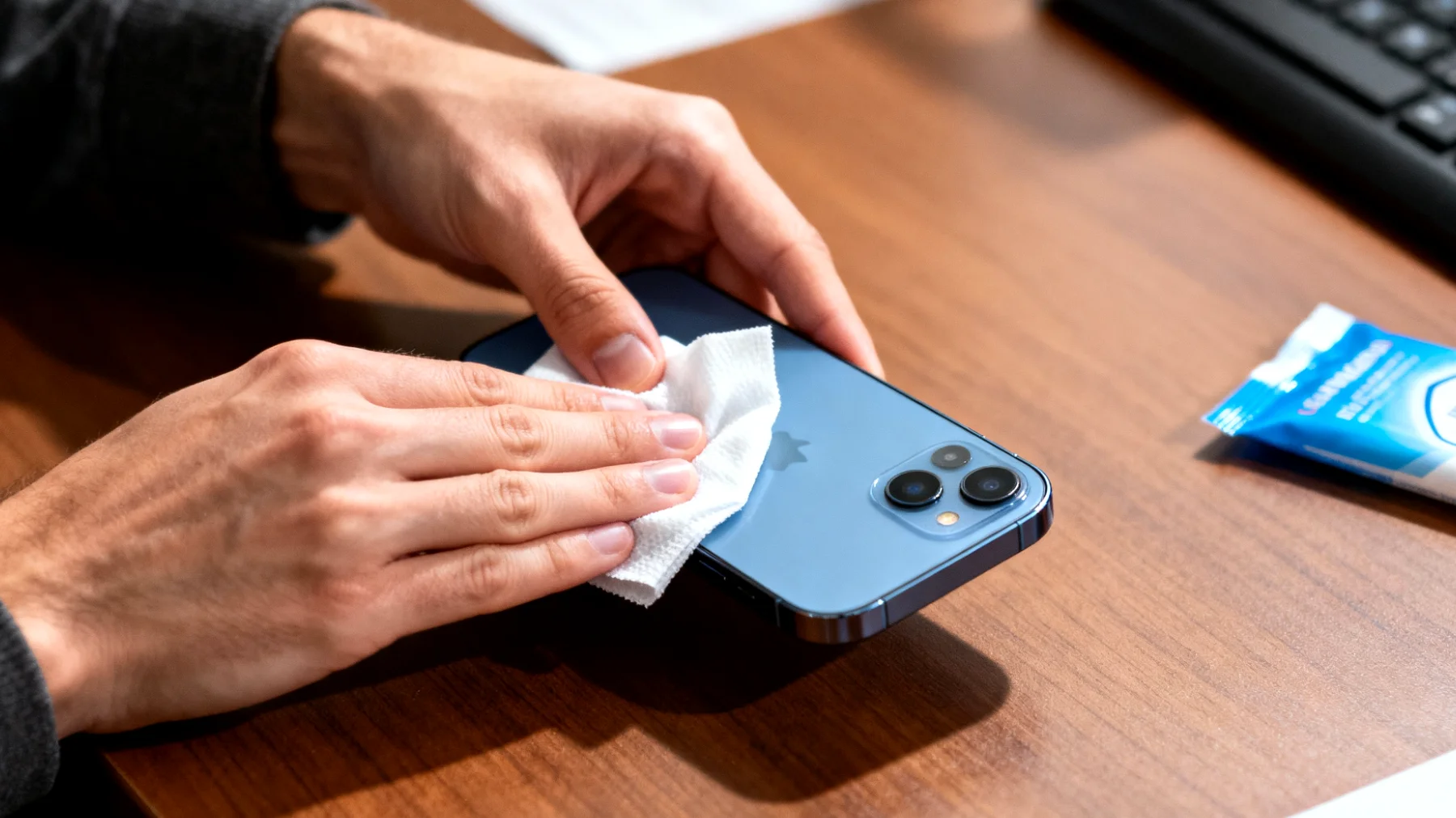 Isopropylalkohol mit einer Konzentration von etwa 70 % ist hier ideal. Er verdunstet schnell, wirkt antimikrobiell und hinterlässt keine Rückstände. Ein leicht angefeuchtetes Mikrofasertuch reicht bereits, um Fettfilm und Bakterien zu beseitigen, ohne die Elektronik zu schädigen. Die Wahl des richtigen Reinigungsmittels basiert auf mehreren Überlegungen: Es muss lipophil genug sein, um Hautfette zu lösen, gleichzeitig antimikrobiell wirken und schnell verdunsten, um keine Feuchtigkeit in das Gerät eindringen zu lassen.