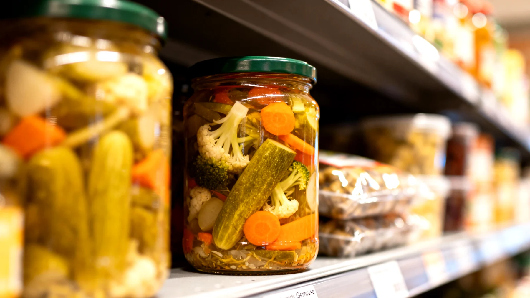 Nicht alle eingelegten Gemüsesorten weisen die gleichen Verhältnisse auf. Antipasti und mediterrane Spezialitäten wie getrocknete Tomaten, Artischockenherzen oder Paprikastreifen in Öl können einen erheblichen Flüssigkeitsanteil aufweisen. Das hochwertige Öl rechtfertigt zwar teilweise den Preis, doch die Menge an tatsächlichem Gemüse fällt oft deutlich geringer aus als die Glasgröße vermuten lässt. Gewürzgurken und Mixed Pickles zeigen ebenfalls starke Unterschiede. Manche enthalten kompakt geschichtetes Gemüse mit wenig Lake, andere schwimmen förmlich in Essigwasser. Auch Maiskörner und Erbsen lassen oft viel Zwischenraum für Flüssigkeit. Die Körner setzen sich am Boden ab, während der obere Teil des Glases hauptsächlich aus Aufgussflüssigkeit besteht.
